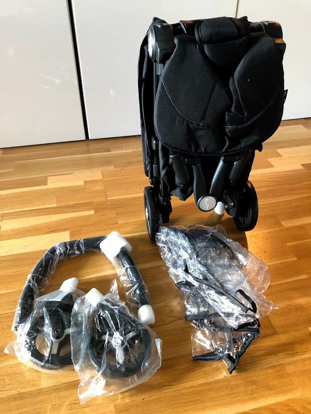 Það kom mér strax á óvart hve kerran var gæðaleg, efnið í áklæðinu er þykkt og veglegt. Þá er handfangið leðurklætt og öryggissláin einnig. Sætið er með góðri bólstrun og sá ég strax að þarna myndi fara vel um litla Mána minn. Ég hafði lesið í umsögnum erlendis að fólki þætti erfitt að leggja kerrunna saman og bjóst því við einhverjum barningi en það reyndist svo vera lítið mál.